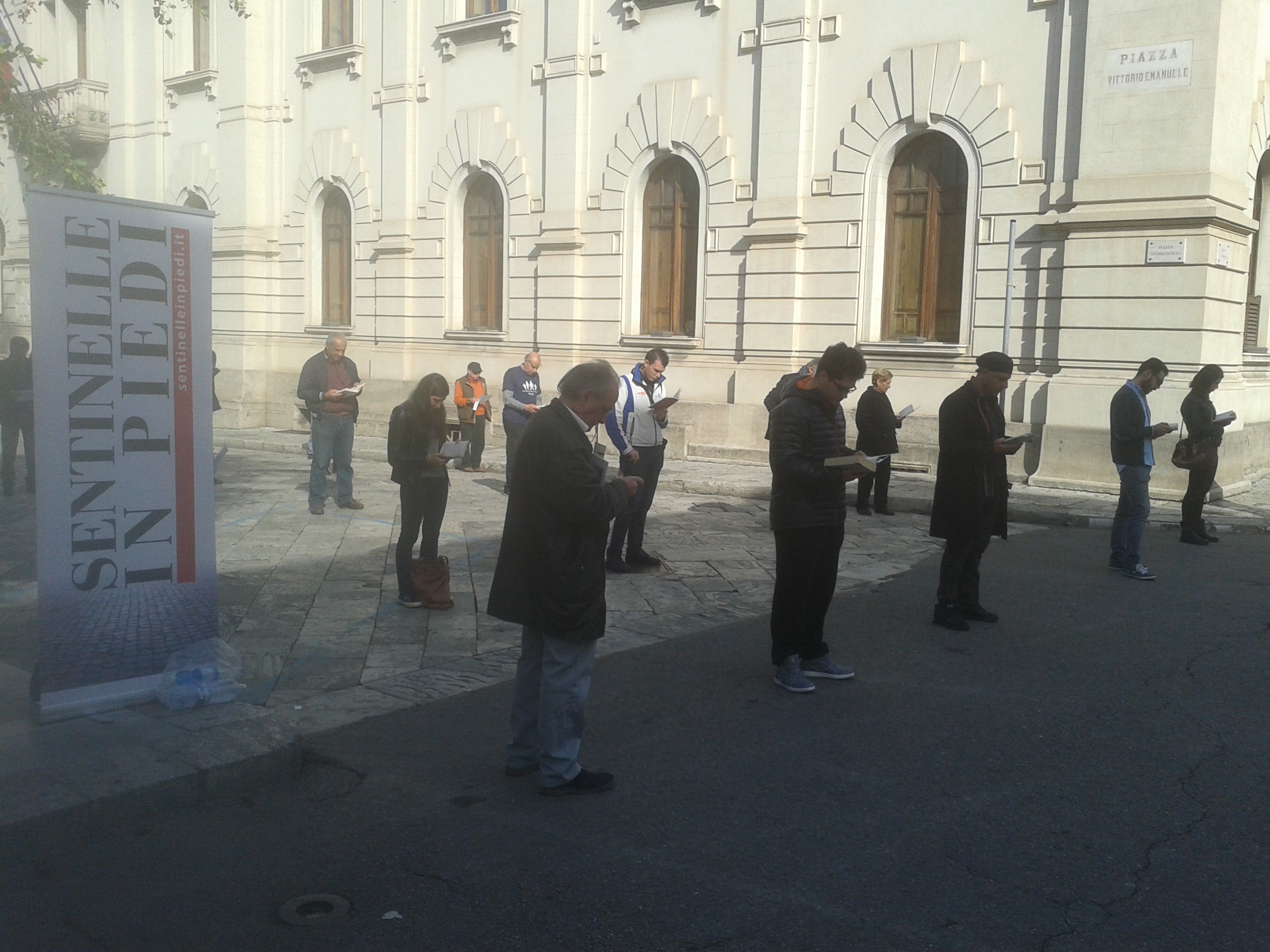 La mattina di domenica 16 novembre il silenzio delle Sentinelle in Piedi ha nuovamente riempito piazza Italia e la città di Reggio Calabria. La terza veglia delle Sentinelle in Piedi, la rete civica, aconfessionale ed apartitica che da ormai un anno in tutta Italia anima una particolare veglia per promuovere la famiglia naturale, si è svolta in un clima di assoluta serenità ed ha visto l’attenzione e la partecipazione di molti passanti incuriositi alla vista di tante persone schierate in maniera ordinata, in rigoroso silenzio e con un libro in mano.