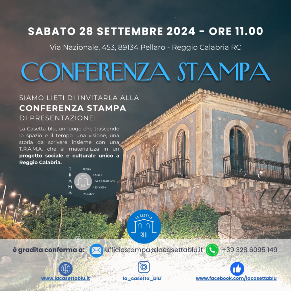 Conferenza stampa di presentazione del Progetto Polo sociale e culturale T.R.A.M.A., organizzata dall’Associazione LA CASETTA BLU APS, di Reggio Calabria.
