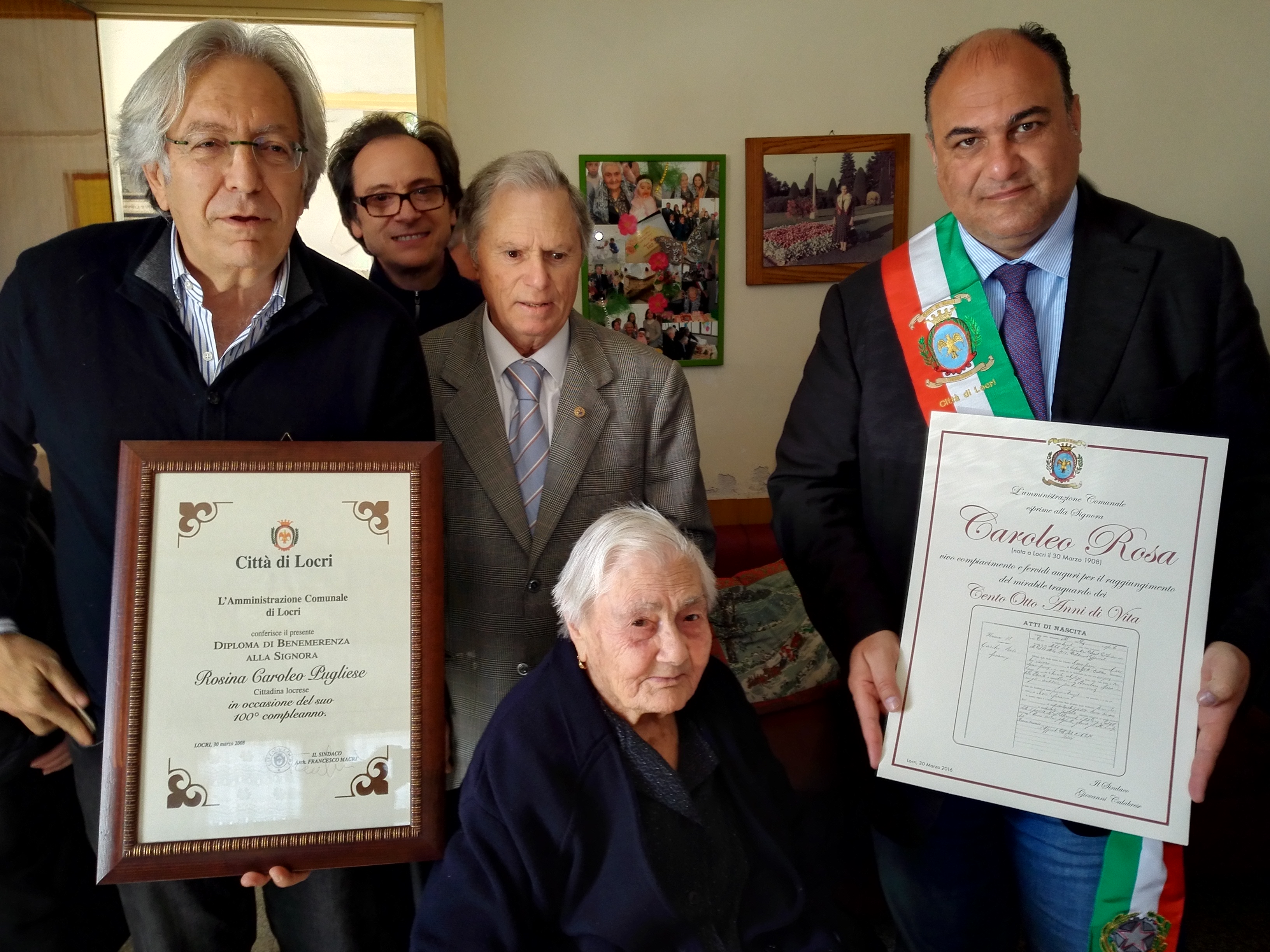 Alla presenza del Sindaco di Locri, Giovanni Calabrese, della Consigliera alle politiche sociali, Anna Maria Mollica, nonché dell’ex Sindaco Francesco Macrì (amministratore al compimento dei 100 anni), è avvenuto il taglio della torta, effettuato dalla stessa signora Rosa, alla quale è stata consegnata una pergamena in ricordo di questo importante traguardo raggiunto.