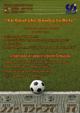 Lunedì 27 dicembre, dalle 15.30, presso il Centro Rempicci di Condofuri, le rappresentative degli Amministratori dell’Area Grecanica, il Forum del III settore distrettuale, la squadra di calcio a 5 femminile locale ed una selezione del Csi di sfideranno in un quadrangolare di calcetto.
