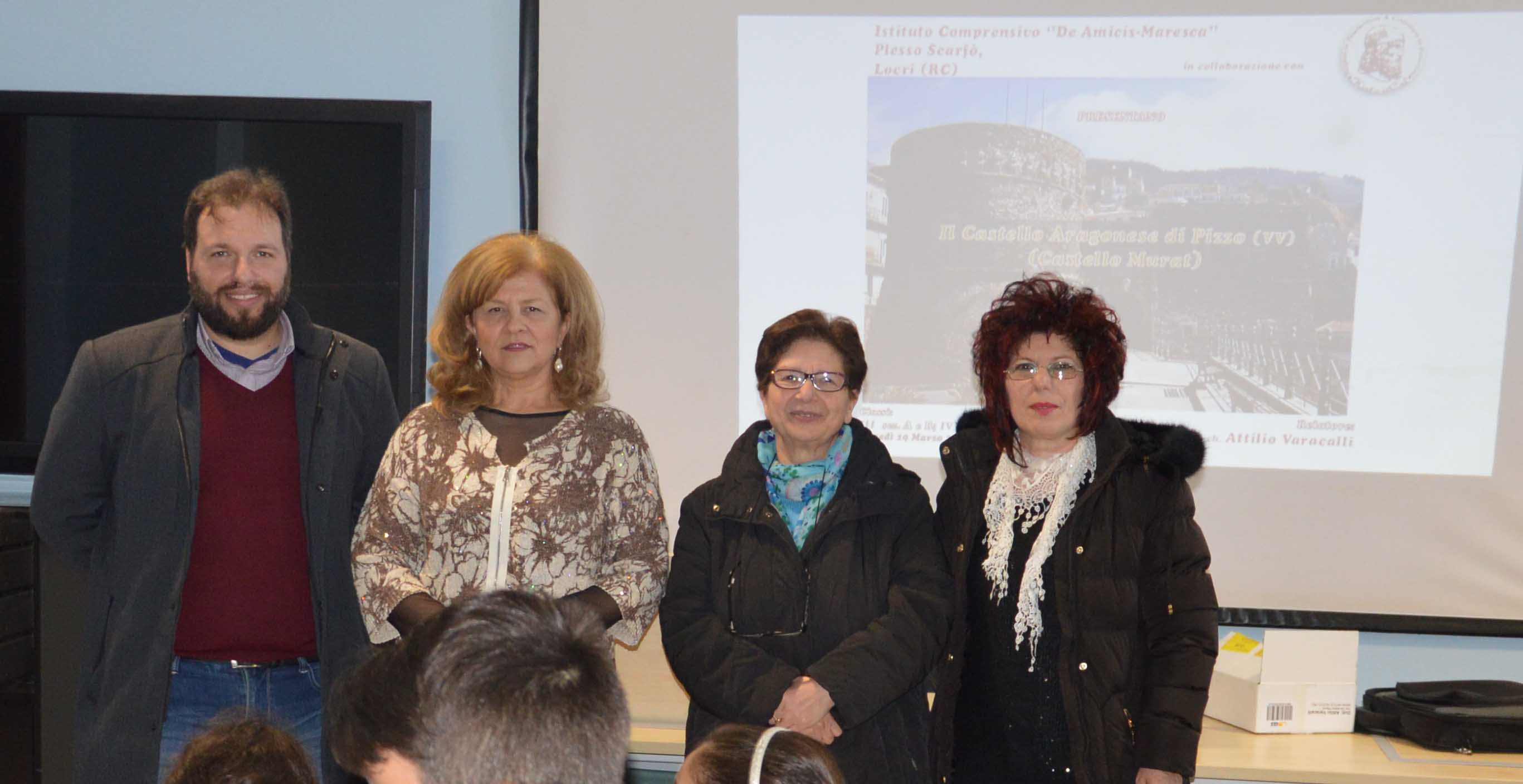 “In questa occasione – continua il Presidente dell’ HistoriCal – abbiamo tenuto, per i ragazzi delle classi terze, quarte e quinte delle sezioni A e B, una lezione sul “Castello Murat di Pizzo” (VV) e sull’ “Evoluzione del Castello: dal Castrum alla residenza nobiliare”. Questo su invito delle insegnanti (la Vicepreside Varacalli Adriana, Alvaro Lucia, Campanella Maria, Candio Silvana, Congiusta Gabriella; ed ancora Galotto Carmela, IIriti Maria Natalia, Mandarano Adriana, Migliorese Concetta, Murisciano Tiziana; ed inoltre di Ruso Maria Teresa, Varacalli Maria e Zavaglia Maria Antonella) e grazie alla collaborazione della Preside Dott.ssa Agata Alafaci. Colgo anche l’occasione per rinnovare i più sentiti ringraziamenti a nome mio e dell’Associazione HistoriCal per l’opportunità concessaci.