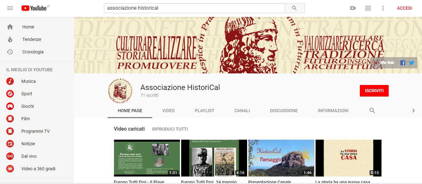 23 maggio 2018, una data storica per l’Associazione HistoriCal: viene messo on-line il canale tematico della stessa.