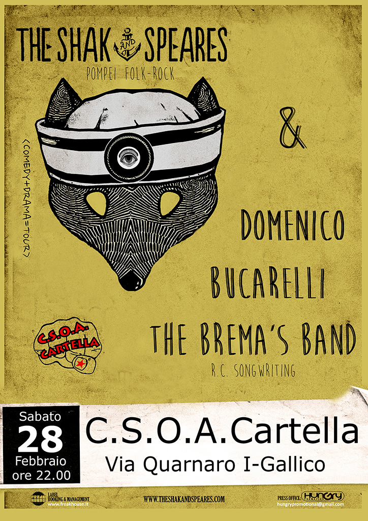 Adesso sono in tour per presentare il loro secondo disco DRAMEDY, che esalta ancor di più il “punk agreste” degli Shak & Speares. La commistione di anarchia punkettona, saltellamenti balcanici, nostalgie irlandesi e poetica lo-fi condita da testi fuori dai binari è irrimediabilmente contagiosa: non perdetevela!