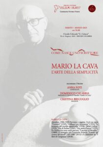Reggio Calabria – Si terrà oggi pomeriggio, alle ore 18:00, presso il Circolo Culturale “G. Calarco” di Reggio Calabria, l’incontro intitolato “Come nasce uno scrittore – Mario La Cava: l’arte della semplicità”. L’evento rappresenta un’importante occasione per approfondire la figura e l’opera del celebre scrittore calabrese Mario La Cava (1908-1988), narratore e saggista che ha saputo raccontare con rara sensibilità la realtà sociale del suo tempo.