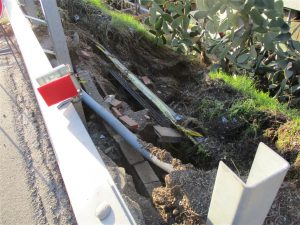 L’ANAS come a noi comunicato con la nota del 12/4/2016, ha in corso in tale tratto dei lavori di costruzione di una canalizzazione di raccolta delle acque piovane di piattaforma sulla sopraelevazione del muro di sostegno a valle della scarpata, convogliando le acque attraverso gli embrici preesistenti nel sottostante canalone, sul quale sono state sopraelevate le spallette in c.a.