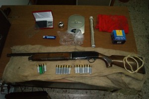 All’interno del bagagliaio, nascosto in un sacco di juta legato alle estremità da lacci di canapa, un fucile marca Beretta calibro 20 con il relativo micidiale munizionamento, 20 cartucce dello stesso calibro caricate a palla e a pallettoni. Da ulteriori accertamenti è emerso che sia l’arma che il munizionamento erano state asportate a Condofuri(RC) nel corso di un furto in abitazione. In quella occasione i ladri avevano asportato anche altri ogetti arrecando un notevole danno alla vittima del reato. Davanti alle giustificazioni poco credibili del LATELLA i militari hanno quindi esteso la perquisizione alla sua abitazione ad un piccolo appezzamento di terreno attiguo. All’atto dell’ingresso i militari sono rimasti sorpresi dal fatto che, all’interno della cucina, ed in particolare nella credenza vi era un piccolo laboratorio idoneo a preparare e confezionare delle sostanze stupefacenti del tipo marijuana.