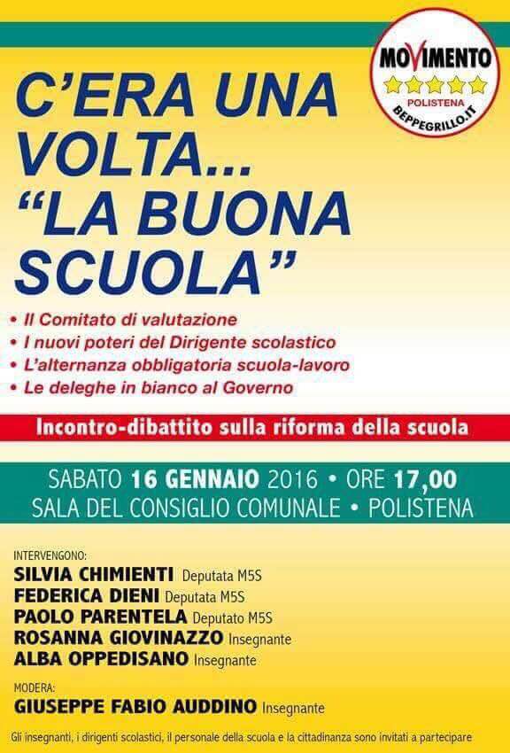 Il titolo dell’evento, che si terrà sabato 16 gennaio alle ore 17 presso la sala consiliare del Comune di Polistena, è “C’era una volta… La buona scuola”.