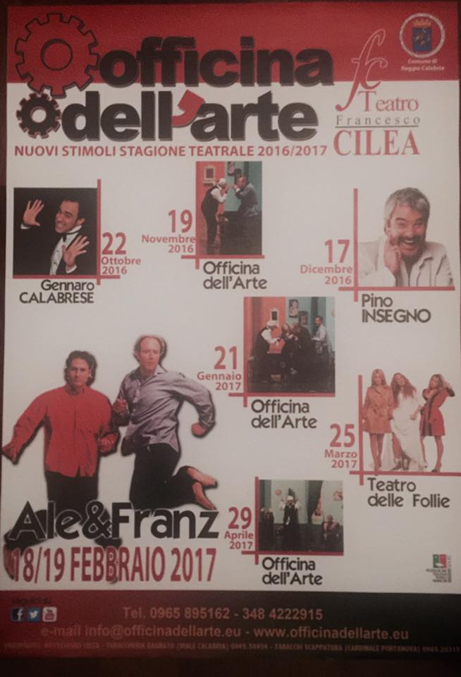 “Abbiamo messo in campo forze nuove, sinergie artistiche per dimostrare che il nostro percorso sta crescendo – esordisce il maestro Piromalli che ringrazia il sindaco Falcomatà per aver “adottato l’Officina” – Rispetto all’anno scorso, non ci sono tante novità se non il potenziamento di nuovi punti vendita (i biglietti della rassegna o gli abbonamenti potranno essere acquistati prossimamente al teatro Cilea o nei punti vendita autorizzati) e la collaborazione con le aziende locali o istituti finanziari come la Banca Mediolanum che ci starà vicino a livello assicurativo e per questo ringrazio il dottor Alfonso Faccioli. Partiamo il 22 ottobre con l’artista Gennaro Calabrese che è stato scelto per aprire la nostra stagione perché non è solo un orgoglio per la città visto che sta calcando prestigiosi palchi portando in alto il nome di Reggio ma è un grande esempio di umiltà, bontà e talento; il 19 Novembre sarà compito dell’Officina dell’arte strappare tante risate con una brillante commedia per poi lasciare spazio il 17 Dicembre al grande attore Pino Insegno che ci delizierà con un divertente show. L’anno nuovo, il 21 gennaio ritorna l’Officina dell’arte con una commedia che riprende le tradizioni, “Se Manzoni la vedesse”, una rivisitazione che però non è fatta ne in dialetto ne in italiano. A Febbraio, poi, il 18 e 19 , il grande botto con il duo comico Ale & Franz; a Marzo il Teatro delle Follie porterà in scena un commedia esilarante dove le protagoniste sono tre attrici bravissime di cui una, Valentina Gemelli, è una reggina doc; il 29 Aprile chiude l’Officina dell’arte con un giallo da ridere, la “Quarta parete” il cui finale lo farà il pubblico”.