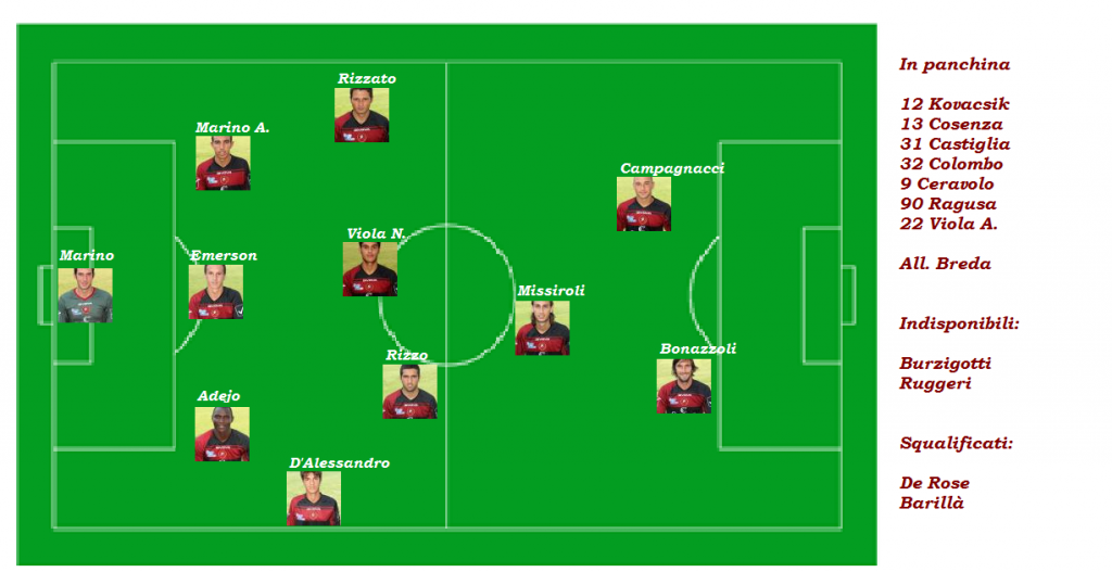 REGGINA: Marino, Adejo, Emerson, Marino A., D’Alessandro, Rizzo, Viola N., Rizzato, Missiroli, Campagnacci, Bonazzoli. All. Breda