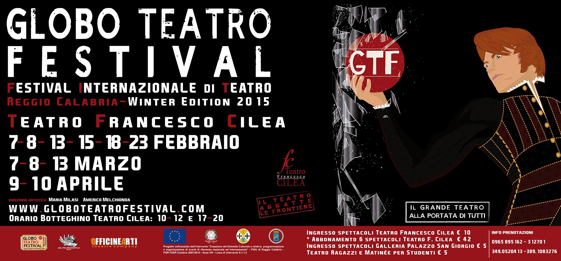 Spettacoli di grande prestigio, quindi, nel cuore della città di Reggio Calabria con una campagna abbonamenti che si chiude il 7 febbraio riducendo ulteriormente il costo dei biglietti in coerenza con la mission di un festival che vuole il grande teatro internazionale alla portata di tutti. Tutte le date e gli orari della programmazione sul sito ufficiale: www.globoteatrofestival.com.