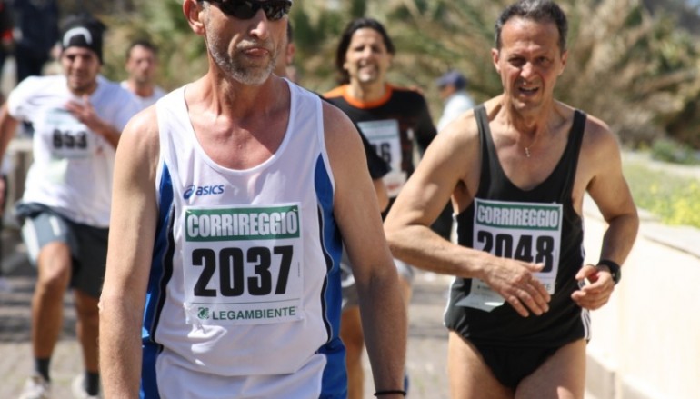 È stata proprio Nunzia Coppedè a dare lo start e a mettere in movimento i tremila di partecipanti alla gara, quelli in assetto da corsa con scarpette e maglietta d’ordinanza (la t-shirt di quest’anno ha riproposto il primo logo della CORRIREGGIO, quello del 1983), e quelli che hanno corso perché partecipare è più importante che competere. Donne e bambini, anziani e curiosi, corridori affezionati e nuove leve. C’è chi ha corso con passeggino e figlio al seguito. E chi come Carmelo Mercurio ha voluto onorare il trentennale sfilando con un bandierone. Un simpatico giovanotto ha addirittura scelto di correre con due mini-trampoli che ricordano le gambe artificiali di Pistorius. Gli attivisti del Coordinamento Associazioni Area Grecanica No al carbone hanno deciso di “semi-correre” schierandosi con le magliette e lo striscione del movimento.