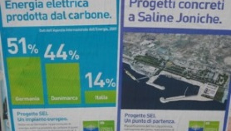 Oggi, invece, in tutto il territorio grecanico scorgiamo frasi come «Energia elettrica prodotta dal carbone» e «Progetti concreti a Saline Joniche». Nello specifico, il manifesto celeste riporta un grafico con le percentuali di consumo di carbone per produzione di energia in Germania (51%), Danimarca (44%) mentre in Italia è ferma al 14%. Inoltre, si specifica che «in tutta l’Europa sono anche decine i progetti a carbone autorizzati in costruzione».