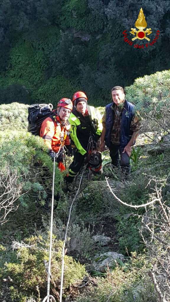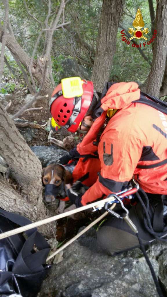 I vigili del fuoco, intervenuti con il nucleo Speleo Alpino Fluviale, hanno allestito una manovra di recupero, per cui si sono calati e dopo aver imbracato il cane lo hanno tratto in salvo.