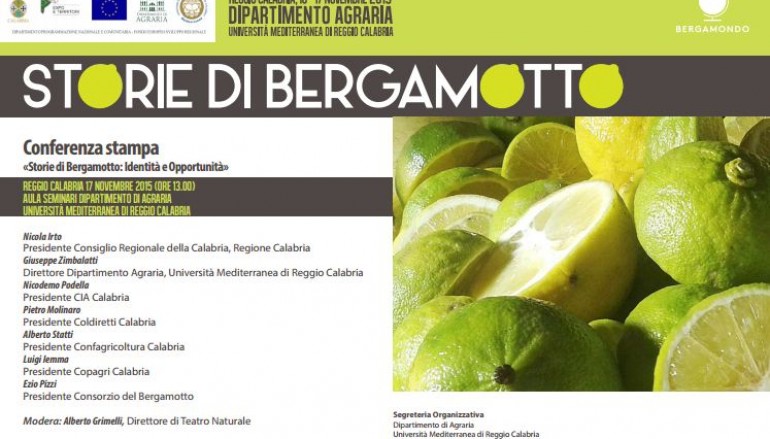 L’importante iniziativa “Storie di Bergamotto”, organizzata dal Dipartimento Programmazione Nazionale e Comunitaria della Regione Calabria e dal Dipartimento di Agraria dell’Università Mediterranea di Reggio Calabria, avrà luogo oggi, lunedì 16 Novembre alle ore 16.30 e continuerà domani, martedì 17 Novembre, a partire dalle ore 9.00.