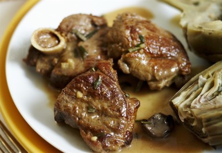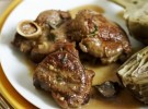 Pulite i carciofi, togliete le punte ed eliminate le foglie esterne. Tagliateli a metà , levate il fieno interno, divideteli in quarti, quindi lasciateli a bagno con acqua e il succo di 1 limone. Rosolate nell’olio metà prezzemolo con l’aglio, quando sarà colorato, levatelo. Unite la carne e fate prendere colore a fiamma vivace mescolando con un cucchiaio. Bagnate con il vino e fate evaporare. Levate un per un pò la carne dal tegame, unite i carciofi scolati e asciugati e cuoceteli per 10 minuti. Rimettete la carne e fate cuocere per altri 30 minuti. Sbattete le uova in una ciotola, unite il prezzemolo rimasto e il succo dell’altro limone ed emulsionate la salsa aggiungendo sale e pepe. Condite con sale e pepe la carne pronta, spegnete il fuoco e versate nel tegame l’emulsione, mescolando con energia e distribuendola su tutta la carne. Servite subito.