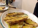 Tagliate il pane a fette dello spessore di un dito, quindi adagiatele sulla griglia e aftele abbrustolire su brace di legna, carbone o sansa. Mettetele poi in un piatto di terraglia, conditele con l’olio e spolverate di pepe nella quantità desiderata.