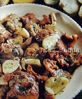di Francesca Tripodi Pulite i funghi raschiandoli delicatamente con un coltellino, per eliminare i residui terrosi e passateli con la carta da cucina inumidita. Tagliate a dadini i gambi e a fettine le cappelle. Spremete il limone, spruzzatene il capretto con il succo; quindi tagliate la carne a pezzetti abbastanza grossi. Fate imbiondire l’aglio nell’olio per qualche miuto, unite il capretto e fate prender colore a fuoco vivace mescolando spesso. Bagnate con il vino e fate cuocere in forno caldo per 20 minuti. A questo punto aggiungete tutti in funghi, il prezzemolo, sale e pepe. Controllate l’umidità della carne: se troppo asciutta bagnate con dell’acqua calda. Completate la cottura del piatto mettendo in forno caldo per 20 minuti. Servite caldo.