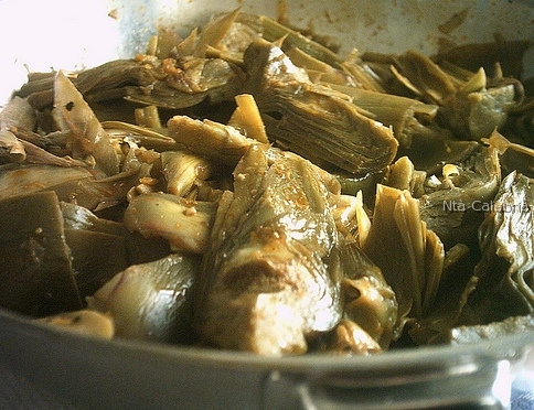 Lavate i carciofi, tagliate le punte spinose, eliminate le foglie esterne più dure e le eventuali barbe e spine interne, quindi affettateli sottilmente; man mano che li preparate versateli in una ciotola con l’acqua e il succo del limone. Lavate e asciugate il basilico, poi tagliuzzatelo. Tritate il peperoncino finemente. In un padella abbastanza ampia fate sciogliere lo strutto su fiamma bassa, unite i carciofi ben sgocciolati, le foglie di basilico e il peperoncino. Fate insaporire per 1-2 minuti mescolando, poi bagnate con il vino, unendolo poco per volta, facendolo così evaporare gradualmente. Mescolate più volte e fate cuocere i carciofi per 10 minuti su fuoco molto bassoe a recipiente coperto. Quando sono ben teneri, regolate di sale e servite, cospargendo a piacere con del basilico spezzettato.