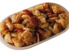 Mondate il cavolfiore, dividetelo in cimette e scottatelo in acqua bollente con un pò di aceto per circa 10 minuti, quindi scolatelo. Sbucciate le patate, tagliatele e fette e sistematele in una teglia con il cavolfiore e la salsiccia ridotta a pezzetti, condite con olio, origano e sale. Cuocete in forno ben caldo per circa un’ora quindi servite ben caldo.