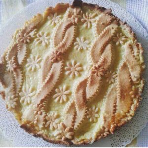 Per preparare la pasta frolla spezzettare il burro, a temperatura ambiente, dentro una ciotola e unirlo allo zucchero e alla scorza di limone. Aggiungere in seguito le uova e amalgamare l’intero composto. Dopo, unire la farina e il lievito fino ad ottenere un composto compatto. Lasciare in frigorifero per almeno un’ora.