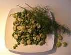 Sgusciate i piselli e le fave, lavateli e metteteli in un tegame con la cipolla affettata, il finocchio a pezzi, un bicchiere d’acqua e l’olio. Fate cuocere a fuoco basso e servite con pepe nero.