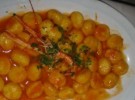 di Francesca Tripodi Lavate le patate, lessatele con la buccia, pelatele e passatele allo schiacciapatate. Impastate la purea con la farina e il sale fino a renderla liscia e omogenea, quindi ricavate tanti bastoncini della grandezza di un dito e tagliateli a pezzetti, quindi date la forma con l’apposito attrezzo o con i rebbi di una forchetta. Fate imbiondire l’aglio e il peperoncino spezzettato con l’olio, pulite i calamaretti, uniteli al soffritto con la passata di pomodoro e fate cuocere per 15 minuti. Lavate nel frattempo le capesante e i fasolari, sistemateli in un tegame con un dito d’acqua e fateli aprire a vapore. Estraete i molluschi, eliminate i residui di terra e tenete delle capesante solo la noce e il cornetto rosso. Versate i molluschi nel sugo con il vino bianco, il prezzemolo e il sale e fate insaporire per 7-8 minuti. Lessate gli gnocchi estraendoli con la schiumarola man mano che vengono a galla, scolateli, conditeli con il sugo e serviteli.