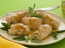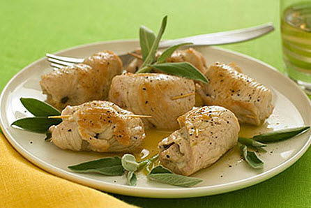 Tagliate le fettine di carne a metà. Lavate i pomodorini, tagliateli a metà e svuotateli dei semini. Mettete un pò di origano in un piattino e rotolateci sopra le mozzarelline. Prendete un mezzo pomodorino, metteteci dentro una mozzarellina, ricopritelo con l’altra metà, poi mettete il pomodorino al centro della fettina di carne, arrotolatela e fermate le estremità con un po’ di spago annodato o con uno stuzzicadenti. Fate la stessa cosa con tutte le fettine. Mettete l’aglio in una padella con l’olio e fatelo dorare. Lavate il rosmarino, tritate grossolanamente le foglie e mettetene una manciata nella padella, assieme agli involtini di carne. Fate saltare gli involtini sul fuoco a fiamma alta per qualche minuto finché non saranno pronti.