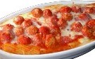 Preparate il sugo: prima fate imbiodire nell’olio lo spicchio d’aglio, poi versate la passatata di pomodoro e aggiustate con sale e pepe. Una volta pronto il sugo eliminate l’aglio, unite le polpette e fate insaporire. Lessate i maccheroni in abbondante acqua salata, scolateli al dente, conditeli con il sugo e serviteli.