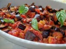 Private le melanzane del gambo, tagliatele a tocchetti, salatele e mettetele sotto peso in un colapasta per almeno un’ora. Trascorso questo tempo stringele bene, in modo da eliminare il succo amaro, quindi soffriggetele in padella con olio d’oliva. Quando saranno dorate levatele dall’olio e tenetele da parte. Togliete gran parte dell’olio dalla padella, lasciate più o meno una cucchiaiata e soffriggete l’aglio schiacciato. Aggiungete i pomodori spezzettati grossolanamente e mescolate bene. A questo punto unite i tocchetti di melanzana, aggiungete un pizzico di sale e portate a termine la cottura, unendo alla fine le foglie di basilico, i capperi e le olive, continuando la cottura per 5 minuti.
