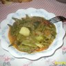 Preparate le verdure: pulite i fagiolini e le zucchine, sbucciate le patate, lavatele e tagliatele a tocchetti. In una pentola soffriggete l’olio, l’aglio e i pomodori spezzettati. Aggiungete poi dell’acqua e, quando bolle, versateci le verdure e il sedano. Cuocete lentamente e a metà cottura unite il sale. Servite caldo.