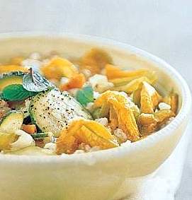 di Francesca Tripodi Pulite i fiori di zucca, eliminate il picciolo, la corolla interna e conservate la sola campana. Lavate, mondate e tagliate a dadini le zucchine; togliete l’estremità e i filamenti dei fagiolini, spezzettateli e lavateli. Pelate ed affettte la cipolla; spezzettate le foglie di basilico. Tagliate a rondelle i peperoncini verdi. Mescolate gli ingredienti preparati in una casseruola, irrorate con l’olio, salate e coprite a filo con acqua fredda. Portae a bollore e cuocete a fuoco basso e a recipiente coperto per circa 40 minuti, mescolando di tanto in tanto. Sistemate le fette di pane sul fondo di 4 fondine da porzione versatevi sopra la minestra bollente e servite.