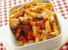Lavate, pelate, private dei semi e spezzettate i pomodori, quindi uniteli alla cipolla affettata ed all’olio, che avrete fatto cuocere insieme per qualche minuto. Aggiungete il peperone spezzettato, il basilico e il sale e continuate la cottura. A parte, lessate per 5 minuti la pasta in abondante acqua salata e fate lo stesso con le patate sbucciate e affettate. Tagliate infine il salame e il formaggio a fettine. Disponete in una capace tortiera uno strato di patate, conditelo con la salsa e distribuite su di esso parte del salame e del formaggio. Continuate con uno strato di pasta, condite con altra salsa e distribuite altro salame e formaggio. Una volta esauriti gli ingredienti, cuocete in forno già caldo per il tempo necessario.