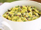 Tenete a bagno in acqua tiepida per un paio di ore le olive secche. Intanto pelate, lavate e tagliate le patate a fette rotonde non molto sottili. Mettetele a friggere in olio bollente, salandole e lasciandole cuocere dolcemente col coperchio. Ogni tanto mescolate, perchè un pò devono disfarsi e risultare in parte morbide, in parte croccanti e quasi abbrustolite. A metà della loro cottura, versate nella padella le olive ammorbidite e un pò d’origano. Fate soffriggere poco le olive perchè diventerebbero dure e legnose. Prima di togliere la padella dal fuoco, cospargete il tutto con pepe rosso, dolce o piccante, a vostro gradimento. Servite le patate ben calde.
