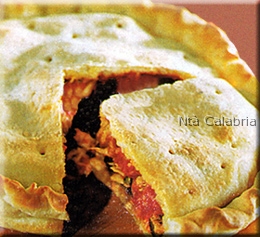 Ponete su una spianatoia la farina a fontana, unite un pizzico di sale e pepe, mettete nel centro il lievito sciolto in una tazzina di acqua tiepida. Impastate bene aggiungendo tanta acqua quanto basta per ottenere un impasto liscio ed elastico. Lavorate la pasta per qualche minuto, poi formate una palla, infarinatela, copritela con un canovaccio umido e lasciatela lieviatre per circa 2 ore. Nel frattempo, lavate accuratamente, asciugate, pelate e tagliate a tocchetti i pomodori; metteteli in una padella con un dl di olio e fateli cuocere a fuoco molto basso per 15 minuti. Poi spegnete il fuoco e fateli rafreddare. Lavate accuratamente i capperi, le olive, il tonno e le acciughe; scolateli e tagliateli a tocchetti. Ponete la pasta lievitata sulla spianatoia, appiattitela con le mani e unite 40 g di strutto, il tuorlo e un pizzico di pepe. Impastate il tutto e staccatene una parte. Stendete il pezzo più grosso in una teglia del diametro di 20 cm, versate sopra il pomodoro, il tonno, i capperi, le acciughe e le olive. Tirate la seconda pasta della larghezza della teglia e usatela per coprire la pizza. Lucidate la superficie con il restante strutto e infornate la pitta per 25-30 minuti a 180°C. Servitela calda.
