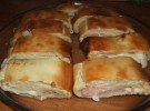 Preparate la pasta: disponete la farina a fontana su una spianatoia, unite al centro le uova, l’olio, un pizzico di sale, il lievito e le patate schiacciate, quindi impastate il tutto. Ottenuto un composto omogeneo, lasciate lievitare per un’ora, quindi stendete la pasta in modo che risulti alta mezzo dito. Coprite con le fette di pancetta, il caciocavallo e le uova sode; rotolate, ponete il rotolo su una teglia unta e cuocete in forno caldo per mezz’ora.