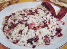 Lavate il radicchio, fatelo scolare e tagliatelo a listarelle. Tagliate la cipolla sottilmente e fatela dorare in una casseruola larga con un pò d’olio; poi aggiungete il riso e lasciatelo tostare per un istante, versate il vino e fate evaporare, aggiungete il radicchio e un pò di brodo (deve essere caldo). Mescolate di tanto in tanto e aggiungete sempre il brodo all’occorrenza. Quando il risotto sarà quasi pronto, aggiungete il formaggio e fate mantecare. Servite subito.