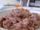 Fate soffriggere la cipolla nell’olio e aggiungete 1/4 di mestolo d’acqua. Unite il riso e fatelo tostare. Versate metà bicchiere di vino lasciandolo evaporare. Continuate la cottura aggiungendo il brodo via via che il risotto si asciuga. Nel frattempo tagliate a tocchetti la salsiccia e fatela rosolare in una padella. Versate il vino rimasto e la salsa di pomodoro, salate e lasciate cuocere per altri 5 minuti. Quando il riso sarà pronto, dopo circa 15 minuti, aggiungete la salsiccia con il sugo e la ricotta grattugiata. Mescolate e servite.