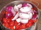 Lavate i pomodori, tagliateli a pezzetti, metteteli in una pentola e spargeteci sopra un pizzico di carbonato di sodio, foglie di basilico, sedano spezzettato e la cipolla tagliata in quattro. Lasciate cuocere per un’oretta a fuoco lento, mescolando di tanto in tanto. Dopodichè li passerete al setaccio o al passaverdure e li rimetterete nella stessa pentola con tutto il liquido fuoruscito. Aggiungete due cucchiai d’olio, il sale e due cucchiaini di zucchero. Continuate a cuocere lentamente, rimestando spesso, finchè non avranno la consistenza di una densa crema. Poco prima di togliere la salsa dal fuoco, agginugete altro basilico e un pizzico di noce moscata.