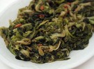 Pulite e lavate accuratamente la verdura, quindi lessatela in acqua bollente per qualche minuto dopodichè colatela. In una pentola soffriggete l’aglio in poco olio, versatevi le verdure, eliminate l’aglio e aggiungete il peperone, spezzettandolo minutamente. Lasciate soffriggere il tutto e, se la verdura dovesse essere dura, aggiungete poca acqua bollente, quindi ultimate la cottura a fiamma bassa per qualche minuto. Al posto del sale potete usare un dado per brodo.