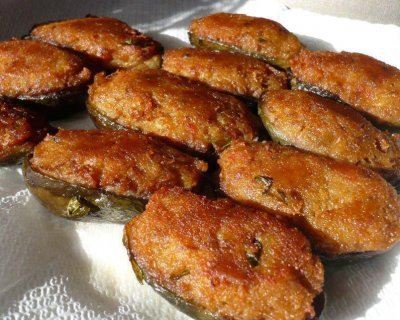 Tagliate a metà 4 melanzane, lasciando il picciolo. Scavate l’interno con un cucchiaio, tenendo da parte la polpa. Cuocete questi “gusci” in acqua bollente salata e acidulata con aceto per circa 20 minuti. Scolateli e fateli asciugare bene su una gratella.