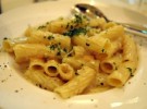 Fate imbiondire l’aglio nell’olio a fuoco medio; quando sarà ben dorato levatelo. Tritate finemente il prezzemolo e la cipolla, unite quest’ultima all’olio e fatela appassire. Togliete la pelle esterna alle fette di tonno e passatelo più volte nella farina perchè se ne impregnino. Unite il pesce infarinato al soffritto e fatelo rosolare per 2 minuti da entrambe le parti a fuoco vivace. Bagnate con il vino rosso, unite il prezzemolo e fate cuocere a fuoco basso per circa 10 minuti, rigirando spesso le fette. Levate il pesce, tagliatelo a dadini e rimettetelo nel sugo. Lasciate cuocere per qualche minuto ancora a fuoco vivace per far ridurre e addensare il sugo. Salate e pepate. Lessate al dente i sedani, scolateli e conditeli con il sugo caldo. Serviteli subito.
