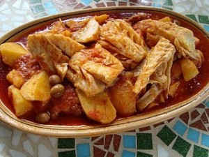 Cuocete per 30 minuti, bagnando se occorre con un pò d’acqua calda. Quando le patate saranno quasi cotte aggiungete le olive snocciolate e lasciate cuocere per altri 10 minuti. Servite lo stoccafisso caldissimo.