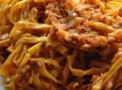 Private la carne del cinghiale da eventuali grassetti, lavatela con acqua e aceto, poi mettetela in un tegame a fuoco vivo, fatele perdere la sua acqua e, quando comincia a rosolare, sfumate la carne con un bicchiere di vino rosso; aggiungete l’olio, la cipolla tritata insieme all’aglio e al prezzemolo e i funghi già puliti e affettati. Mescolate e fate insaporire il tutto per qualche minuto, poi aggiungete i pomodori passati, il peperoncino e il finocchietto. Aggiustate di sale e fate cuocere fino a quando il sugo non sarà ristretto e la carne cotta. A questo punto levate la carne, prendete i pezzettini magri, sfilacciateli e rimetteteli nel sugo, tenete il resto del cinghiale al caldo. Cuocete i taglierini in abbondante acqua salata, scolateli e conditeli con il sugo del cinghiale e con ricotta salata grattugiata. Servite la carne di cinghiale a parte come secondo.