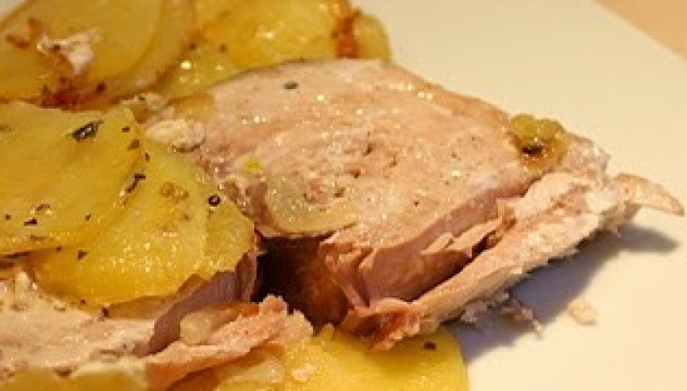 Lavate le patate e lessatele in acqua salata con tutta la buccia. Soffriggete l’aglio nell’olio, unite la polpa di pomodoro, salate e cuocete per 10 minuti. Unite il tonno sgocciolato, spruzzate col vino e aggiungete le patate sbucciate e tagliate a pezzetti. Cospargete col prezzemolo e l’origano e cuocete per altri 5 minuti. Servite caldo.