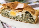 Lessate la bietola, scolatela bene e tritatela. In un tegame soffriggete dolcemente il burro con il lardo, la cipolla tritata e gli spicchi d’aglio. Unite poi le bietole, con sale e pepe, e lasciate insaporire. Intanto, in una terrina stemperate la ricotta dolce con il parmigiano e la maggiorana. Quando le bietole sono ben insaporite, versatele nella terrina con la ricotta e lasciate riposare il tutto. Preparate quindi la sfoglia impastando la farina con un po’ d’acqua, 1 cucchiaio di olio, il sale e dividete la pasta così ottenuta in 12 parti uguali. Ungete d’olio una tortiera e sistematevi, sovrapposte, le prime 6 sfoglie, che avrete tirate molto sottili, ungendole tra uno strato e l’altro. A questo punto riempite la tortiera con il ripieno di verdura, formate sei fossette, versate un uovo in ciascuna di esse, un po’ d’olio e parmigiano. Coprite il tutto con le rimanenti 6 sfoglie, tirate sempre molto sottili, unte tra uno strato e l’altro tranne l’ultima sfoglia che va spennellata con l’uovo sbattuto. Punzecchiate la superficie della torta prima di metterla a cuocere in forno a 200 gradi per 1 ora.
