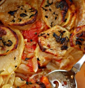 di Francesca Tripodi Pelate le patate, lavatele e tagliatele a fette rotonde di circa 1 cm di spesore. Affettate le cipolle e fatele appassire per 5 minuti con 2 cucchiai d’olio. Bagnate una pirofila con l’olio di cottura delle cipolle, sistemate uno strato di cipolle e patate e aggiungete i pomodori freschi pelati e tagliati a fettine. Coprite con il pecorino grattugiato, origano, sale, pepe e poco olio. Continuate ad alternare i vari strati fino ad esaurire gli ingredienti quindi cuocete in forno a 180°C per un’ora circa fin quando si formerà una crosticina dorata. Servite le patate ben calde.