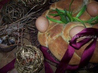 Setacciate la farina e disponetela a fontana sulla spianatoia. Sciogliete il lievito nell’acqua e versatelo nella farina, lavorate tutti gli ingredienti tranne il sale che aggiungerete successivamente. Impastate finche’ otterrete un impasto elastico e omogeneo. Mettete a lievitare in una ciotola unta d’olio e coperta con un canovaccio umido fino a che non raddoppia il volume iniziale. Versate l’impasto lievitato sulla spianatoia, prelevatene circa 150g e tenetelo da parte per la decorazione finale. Spezzate il resto in tre parti uguali. Modellate un primo pezzo dando la forma di un filoncino. Con un matterello appiattite a nastro della larghezza di 8/9cm circa, riempitelo di olive schiacciate e richiudete la pasta saldando le estremità con i polpastrelli delle dita. Filate i due pezzi di pasta rimasti e farcite uno con il caciocavallo, l’altro con la soppressata. Allineate i tre filoncini su una teglia ricoperta da carta da forno e cosparsa di semola. Spennellate con 1 uovo sbattuto e cospargete ogni filoncino con i semi. Intrecciate i filoncini formando una treccia. Unite le estremità e chiudete a ciambella. Incastrate le uova crude e fermatele con le strisce di pasta a croce tenuta da parte. Fate lievitare 15/20 minuti e cuocete in forno statico preriscaldato a 180° per 30 minuti circa