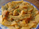 Sbucciate la zucca, riducetela a fettine sottili e ponetela in un tegame dopo averla salata. Fatela cuocere senza aggiungere nulla; a cottura avnzata, quando si sarà consumato tutto il liquido di cottura, aggiungete l’olio e la cipolla tritata finemente e lasciate cuocere ancora. A fine cottura amalgamate il tutto con una manciata di pepe rosso piccante ed origano. Servite la zucca calda.