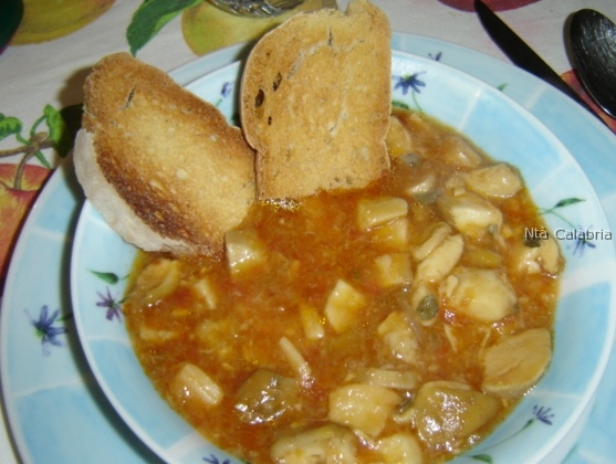 di Francesca Tripodi Lavate accuratamente i funghi raschiando delicatamente le radici, poi puliteli con un canovaccio inumidito per eliminare tutti residui terrosi, quindi tagliateli a dadini o a fettine. Disponeteli in un piatto, cospargeteli di sale e lasciateli riposare per 2 ore. Pelate la cipolla e tagliatela a fettine; pelate l’aglio e schiacciatelo con la lama del coltello; lavate il prezzemolo e tritatelo finemente. Fate sciogliere in una padella lo strutto, unite l’olio, la cipolla e l’aglio, fate rosolare a fuoco moderato fino a quando saranno dorati. Aggiungete la passata di pomodoro e 2 cucchiai di acqua. Lasciate insaporire un istante, quindi unite i funghi, mescolate bene sul fuoco vivace, bagnate il tutto con 1 litro d’acqua, salate, pepate e portate ad ebollizione. Al raggiungimnento del bollore, cuocete per altri 15 minuti. Servite la zuppa cosparsa a piacere con del pecorino ed un pizzico di prezzemolo tritato. Servite con le fette di pane tostate.