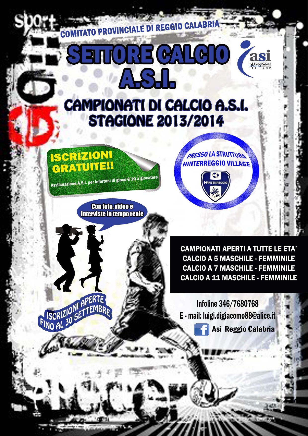 Dopo gli ottimi successi degli anni precedenti con Bwincup e Unileague, che hanno visto impegnate ben oltre 100 squadre tra società sportive e associazioni universitarie, l’A.S.I (Associazioni Sportive e Sociali Italiane) è pronta a ripartire con i nuovi campionati di calcio per la stagione 2013/2014. Il comitato Provinciale di Reggio Calabria ha deciso di REGALARE l’iscrizione a tutte le squadre partecipanti ai campionati per la corrente stagione Sportiva pertanto le società, le associazioni universitarie, e chiunque volesse partecipare ai nostri tornei non dovranno pagare l’iscrizione bensì soltanto la quota assicurativa pari a 10 euro per ogni calciatore e la quota del campo ad ogni partita giocata. Le iscrizioni saranno aperte fino al 5 ottobre 2013 e si potrà scegliere tra diverse categorie, ovvero: